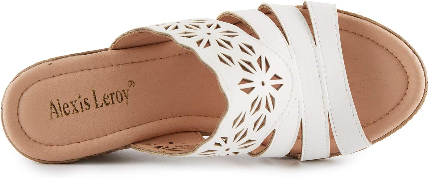 Alexis Leroy Women’s Open Toe Comfort Strappy Wedge Slide Sandals