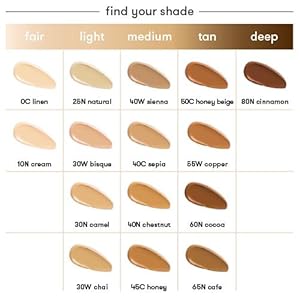 Identify the skin tone closest to yours. Are you fair, light, medium, tan, or deep? Our shades range from 0 (fairest shade) to 80 (deepest shade). Look for the number to determine your tone.