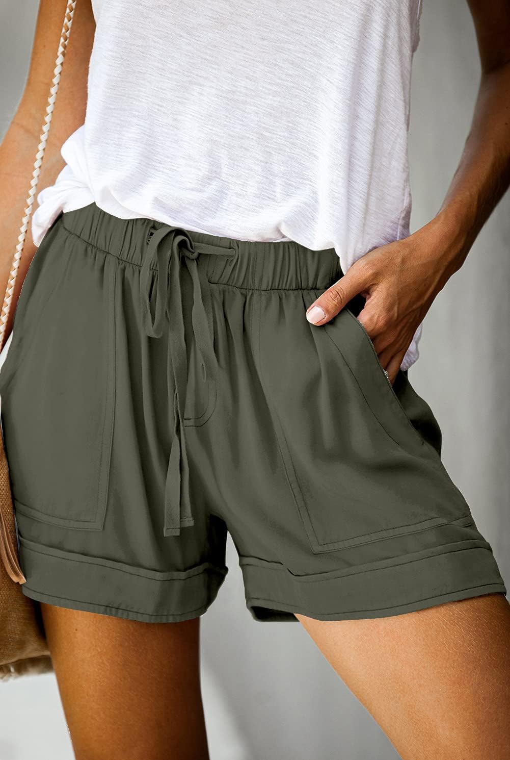 Women Shorts Summer Casual Shorts Drawstring Elastic Waist Beach Pants